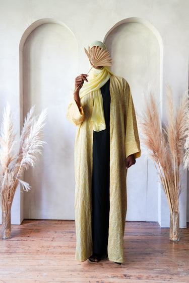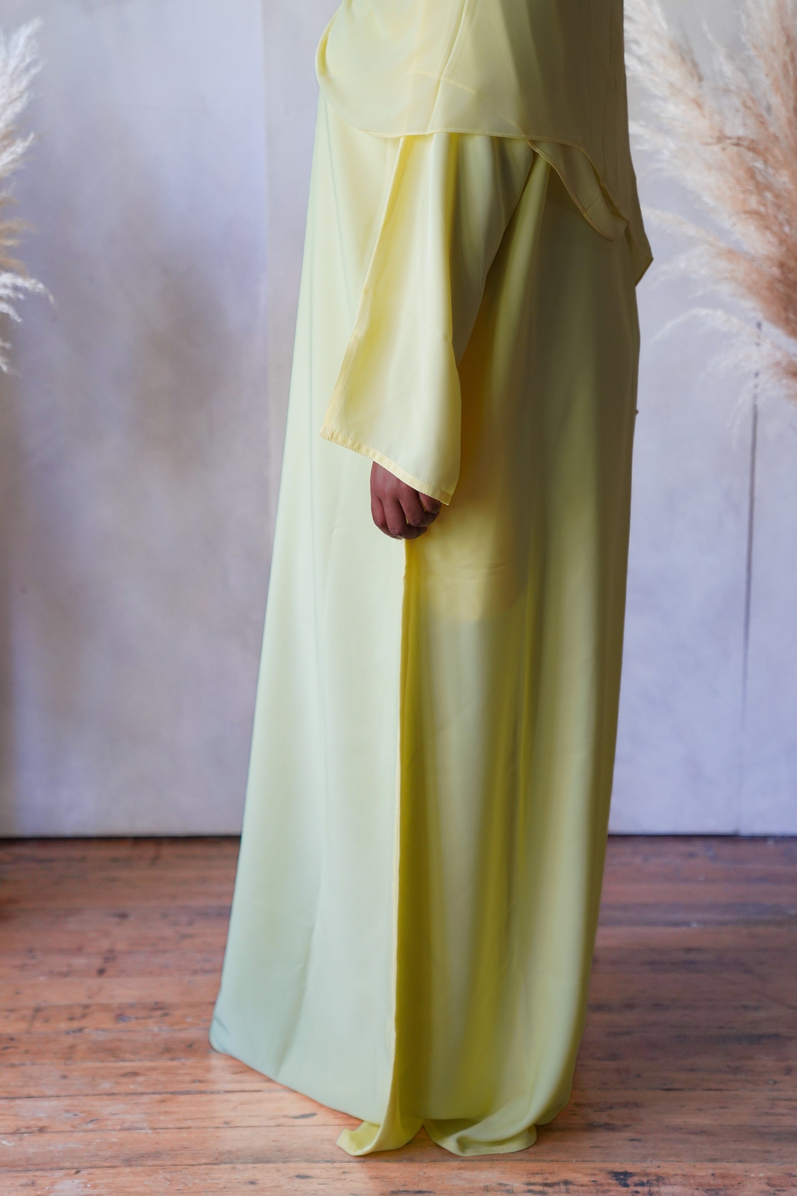 Radiant and warm, the Butter Yellow Abaya Set brings sunshine to your modest wardrobe. Designed for comfort without compromising on style.