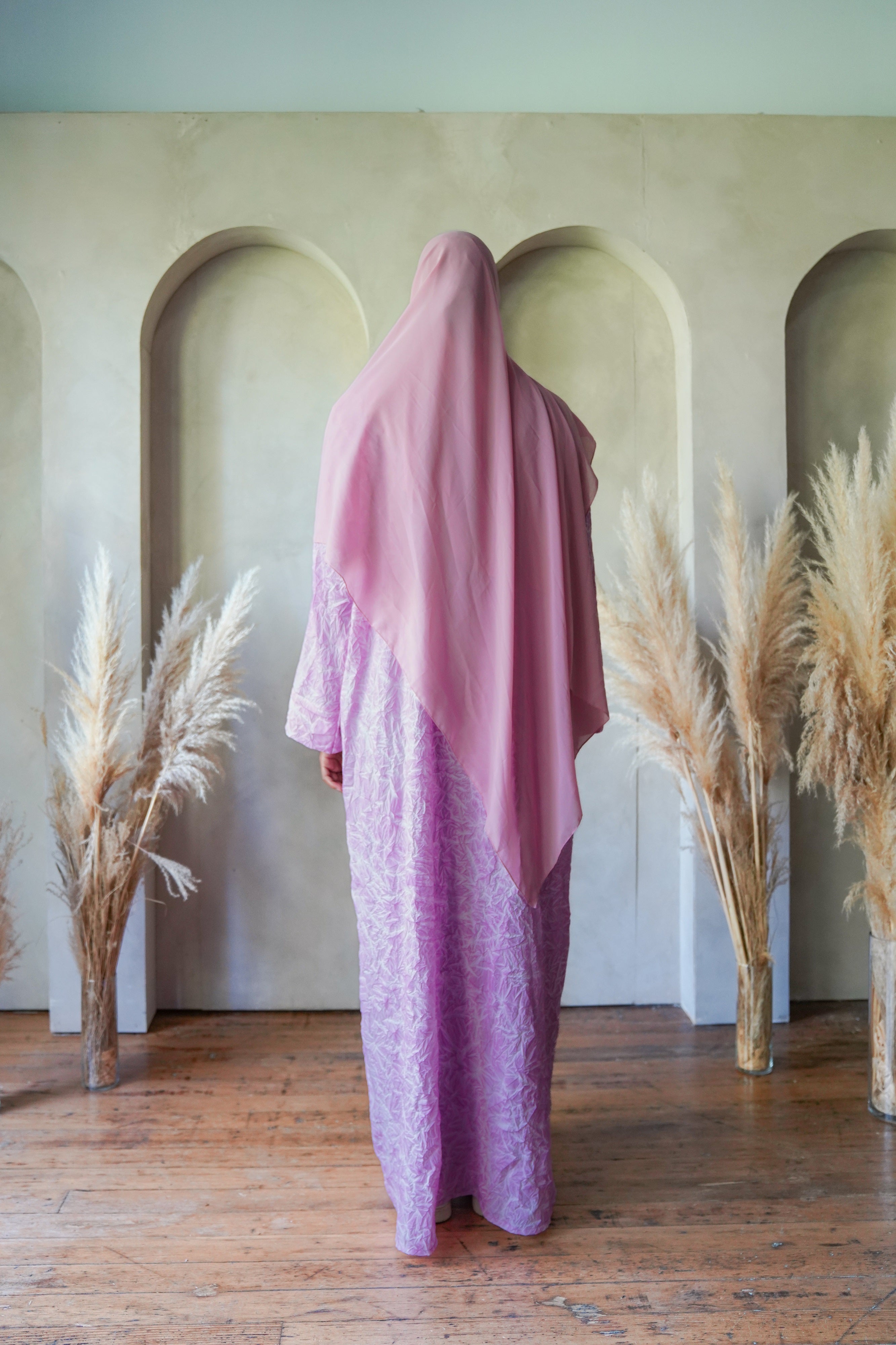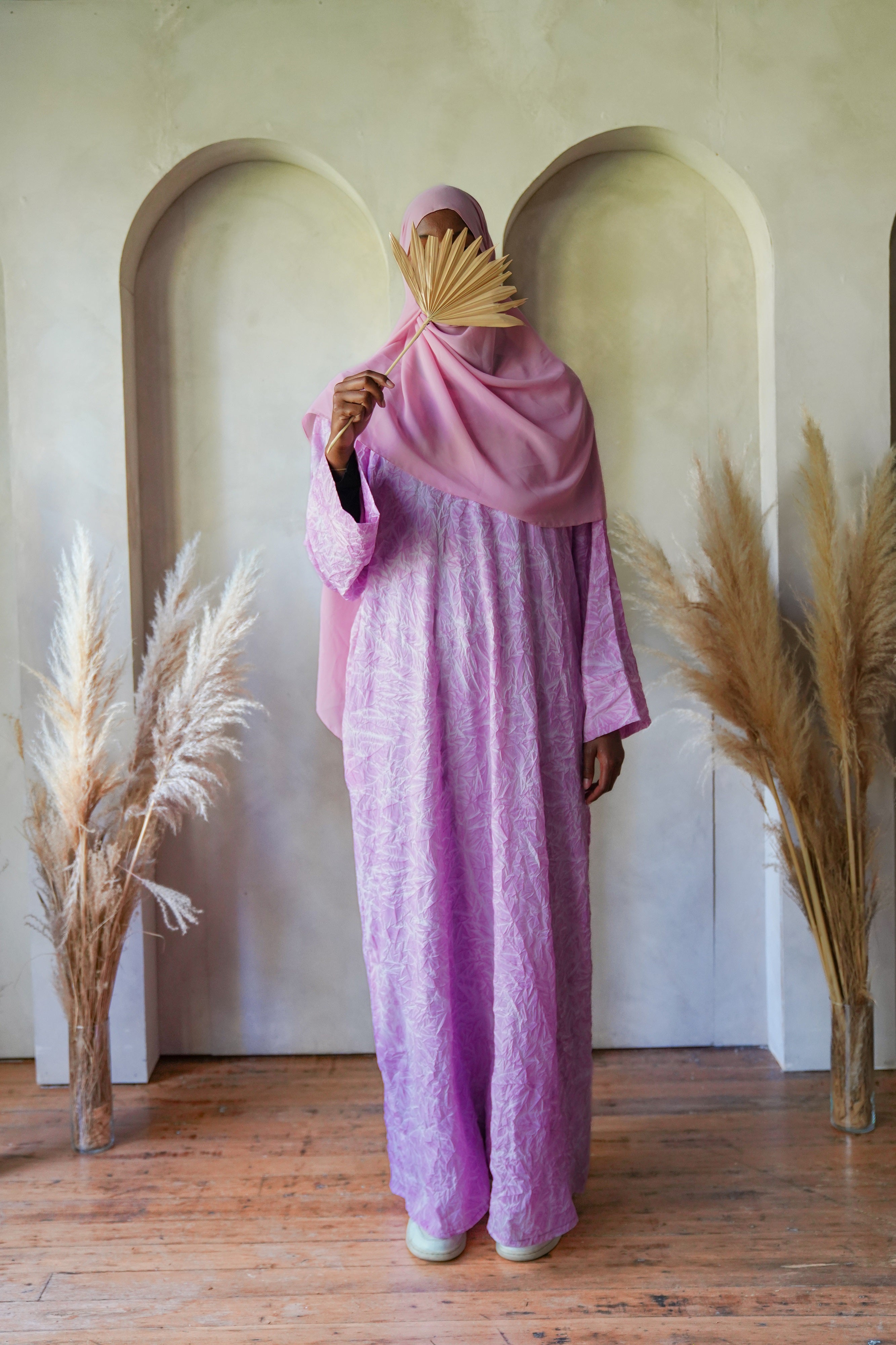 Inspired by cherry blossoms, this blush-toned crinkle abaya blends texture and flow for a truly unique silhouette.
